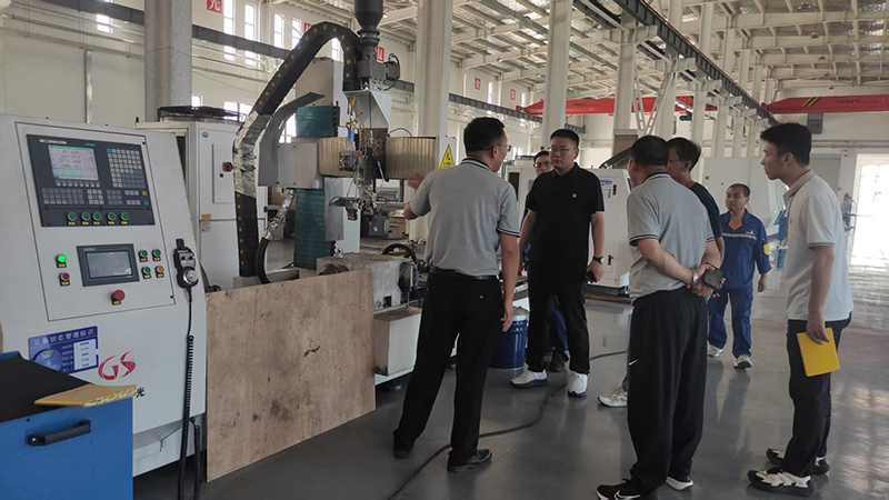 在國盛激光總經(jīng)理段純先生、技術(shù)總監(jiān)呂文輝先生及技術(shù)部相關(guān)負(fù)責(zé)人的熱情陪同下,中鋼西重馬總等領(lǐng)導(dǎo)一行先后參觀了國盛激光前臺小樣展廳、生產(chǎn)車間以及大型樣品加工展區(qū)。每到一處,領(lǐng)導(dǎo)們都仔細(xì)聆聽介紹,不時(shí)駐足詢問,對國盛激光的產(chǎn)品和展區(qū)布局有了初步且直觀的認(rèn)識。