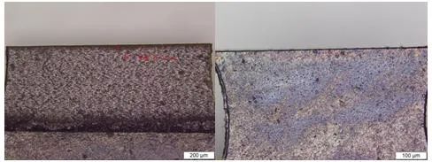 用電子顯微鏡和光學(xué)顯微鏡觀察,薄氧化物的光學(xué)效應(yīng)和之前熔融銅的散射/反射性質(zhì)不太明顯,這使得人們可以關(guān)注表面的真實尺寸方面,例如調(diào)制、邊緣平直度等。在這里,SEM圖像顯示了一個干凈且經(jīng)過精密加工的特征,具有高質(zhì)量的表面。