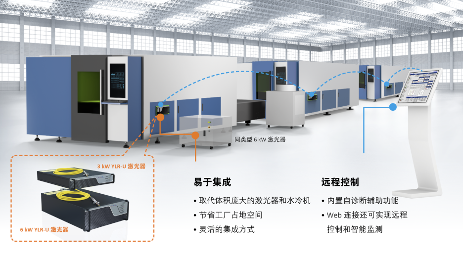 在許多要求苛刻的鈑金加工行業(yè)中,為了提高生產(chǎn)效率,往往是幾十臺(tái)激光設(shè)備連續(xù)不斷地加工,比如 7×24 小時(shí)全天候的金屬厚板激光切割。在這種生產(chǎn)模式下,與傳統(tǒng)的高功率激光器相比,全新的 6kW YLR-U 激光器,憑借其超緊湊的結(jié)構(gòu),可直接集成到激光系統(tǒng)內(nèi)部,或者安裝系統(tǒng)旁的小型機(jī)架或機(jī)柜中,系統(tǒng)制造商可輕松實(shí)現(xiàn)集成和優(yōu)化占地空間。
