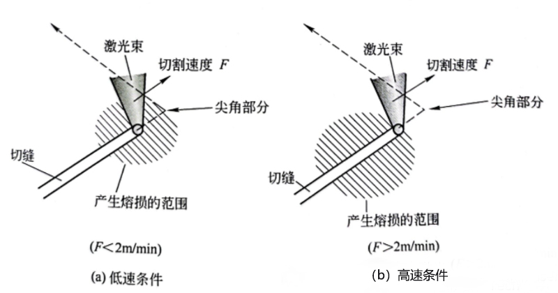 尖角部位發(fā)生過燒通常是由于熱量堆積引起的,具體是因為當激光經(jīng)過時,該尖角處溫度已經(jīng)上升到很高。倘若激光束的前進速度大于熱量的傳遞速度,則可以有效地避免過燒。
