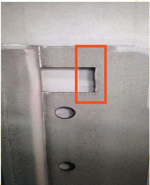 在鈑金切割過程中,切割的入刀點(diǎn)也自然會(huì)成為其回刀點(diǎn)。選擇合理的入刀點(diǎn)會(huì)降低產(chǎn)生切割波紋的概率。當(dāng)加工剛開始時(shí),由于板材強(qiáng)度較好,切割入刀點(diǎn)及加工方向?qū)η懈畈粫?huì)產(chǎn)生太大影響,但當(dāng)加工接近尾聲時(shí),對(duì)于剩余的待加工制品來說,其入刀點(diǎn)和加工方向?qū)η懈钍欠癞a(chǎn)生波紋有著重要影響。要保證制品靠近夾鉗端的強(qiáng)度,這樣才能更好地避免切割波紋的產(chǎn)生。當(dāng)入刀點(diǎn)選擇在制品中間位置時(shí),無論是順時(shí)針切割還是逆時(shí)針切割,都會(huì)使制品的底部先被切開,造成板材應(yīng)力釋放,強(qiáng)度降低,穩(wěn)定性下降,最終導(dǎo)致制品局部切割波紋的產(chǎn)生,如圖6所示。而當(dāng)入刀點(diǎn)選擇在底部端點(diǎn)時(shí),制品靠近夾鉗端被最后切斷,這樣板材應(yīng)力未被提前釋放,運(yùn)動(dòng)穩(wěn)定,切割波紋產(chǎn)生的概率就會(huì)大大降低,如圖7所示。當(dāng)然,也要根據(jù)順時(shí)針切割還是逆時(shí)針切割選擇入刀點(diǎn)在左側(cè)底部還是右側(cè)底部。因此在編程時(shí),關(guān)于切割入刀點(diǎn)及加工方向的選擇,只要盡可能保證制品靠近夾鉗端被最后切斷且運(yùn)動(dòng)距離越短,越可以在一定程度上避免切割波紋的產(chǎn)生。
