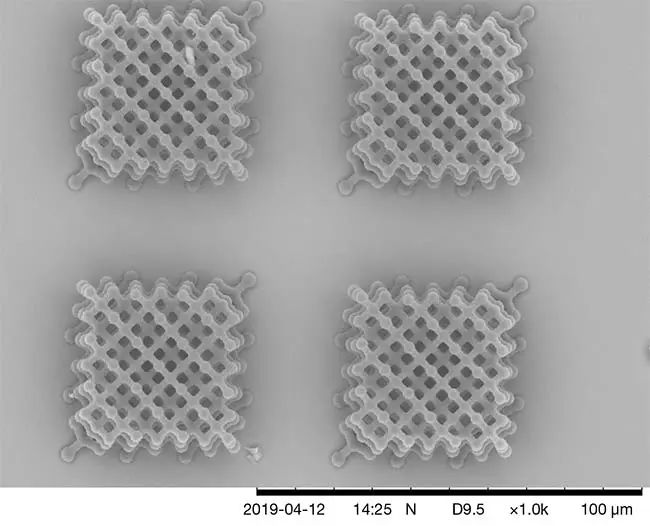 這種方法提供了無與倫比的分辨率,原因有二。首先,使用高 NA 光學器件會產生緊密的微米級腰部,其次,由于雙光子吸收取決于峰值功率的平方,因此可以調整傳輸的激光功率,以便在激光束內只有一個小的中心區域。束腰引起聚合。通過這種方式,該工藝可以提供亞微米空間分辨率,并且香港研究人員報告了測量約 100 nm 的特征的創建,他們使用可編程鏡陣列進一步加速了該過程,以創建多光束工藝1。