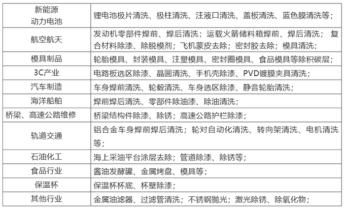 激光器發展的同時也促進我國激光清洗技術的飛速發展,激光清洗技術也成為工業、船舶、航空航天等高端制造領域不可或缺的清洗技術,包括輪胎模具表面橡膠污物的去除、金膜表面硅油污染物的去除以及微電子行業的高精密清洗等。