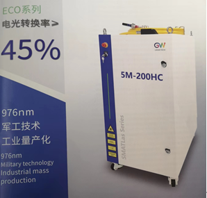 GW光惠激光也一直致力于追求更高的電光轉換效率。2017年,GW光惠激光推出976nm泵浦技術方案,其電光轉化效率超過42%。2021年3月,GW光惠激光在慕尼黑光博會推出ECO系列產品,其中包括電光轉化效率超過45%的20kW高功率產品。