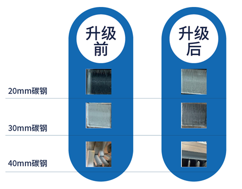 GW光惠激光在光束模式優(yōu)化也一直未止步,于2019年推出HBF厚板切割模式后,2022年7月進一步升級為CHF(Cohesion High-Brightness Flat-Top)凝態(tài)高亮平頂技術,通過獨立研發(fā)的凝態(tài)光束技術可以使輸出的光亮度平頂光束的能量分布與其他特性表現(xiàn)的十分穩(wěn)定,不易受內外部波動因素影響,使厚板切割性能更加卓越可靠,以20kW的切割效果為例,效果所示如下: