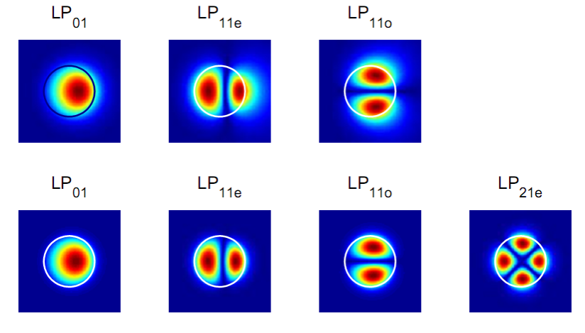當存在彎曲濾模等機制時,基模損耗小,高階模式的彎曲損耗大,導致綠線的高階模式被濾除,則輸出端表現為時域上的基模抖動。