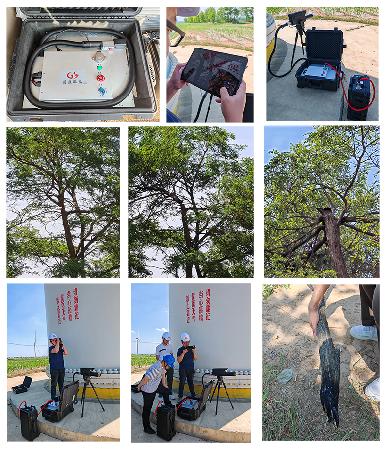 1、安全性高:無需停電、無需登高,可在地面帶電完成清障,避免了傳統(tǒng)帶電作業(yè)或停電人工作業(yè)的高風險。同時激光作用時間短,能有效減少熱損傷或熱變形的風險。